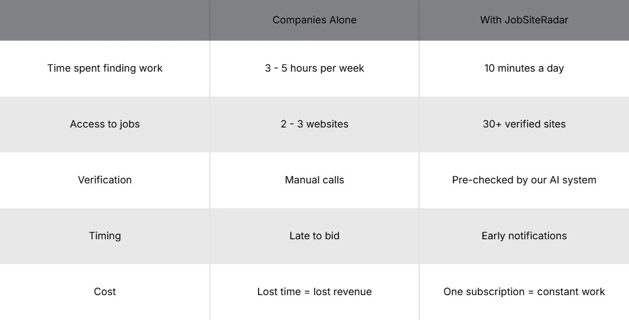 Join JobSiteRadar’s AI Program and get alerts before opportunities go public.